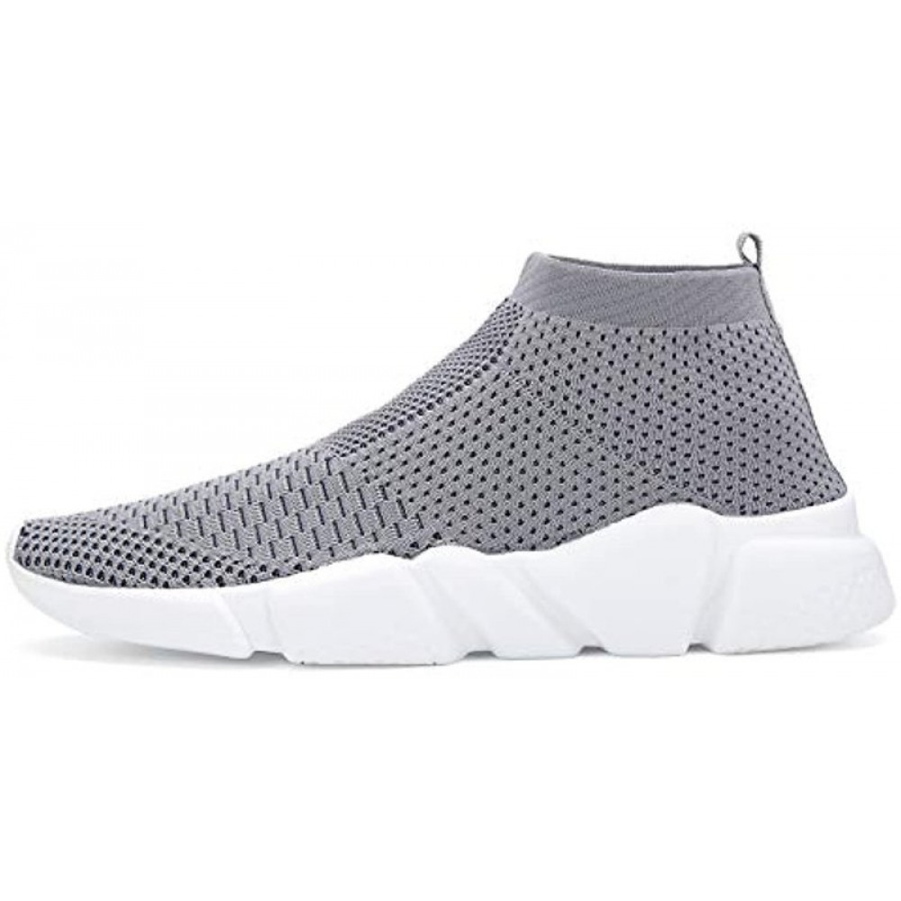 Men's Running Shoes Breathable Knit Slip On Sneakers Lightweight Athletic Casual Sports Shoes Grey